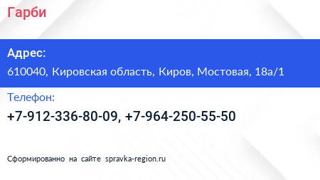 Гарби по адресу 610040, Кировская область, Киров, Мостовая, 18а/1 в дальнейшем Организация, размещена в следующих категориях: