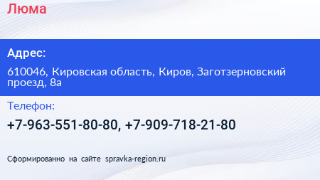 Люма по адресу 610046, Кировская область, Киров, Заготзерновский проезд, 8а в дальнейшем Организация, размещена в следующих категориях: