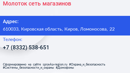 Молоток, сеть магазинов по адресу 610033, Кировская область, Киров, Ломоносова, 22 в дальнейшем Организация, размещена в следующих категориях: