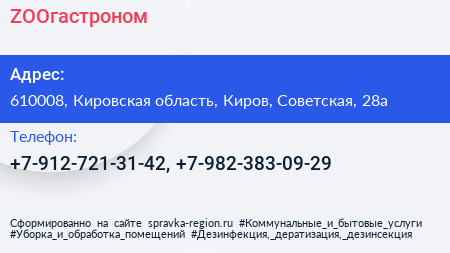 ZOOгастроном по адресу 610008, Кировская область, Киров, Советская, 28а в дальнейшем Организация, размещена в следующих категориях:
