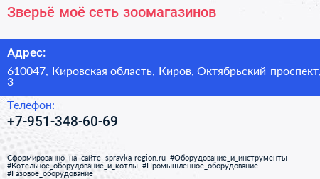 Зверьё моё, сеть зоомагазинов по адресу 610047, Кировская область, Киров, Октябрьский проспект, 3 в дальнейшем Организация, размещена в следующих категориях: