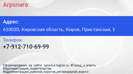 Агролига по адресу 610020, Кировская область, Киров, Пристанская, 1 в дальнейшем Организация, размещена в следующих категориях: