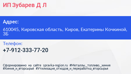 ИП Зубарев Д.Л. по адресу 610045, Кировская область, Киров, Екатерины Кочкиной, 3Б в дальнейшем Организация, размещена в следующих категориях: