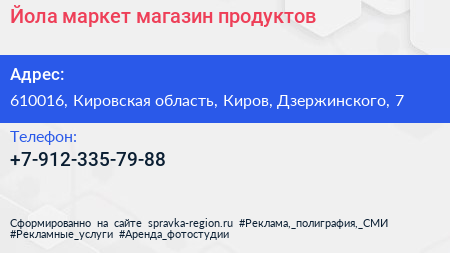 Йола-маркет, магазин продуктов по адресу 610016, Кировская область, Киров, Дзержинского, 7 в дальнейшем Организация, размещена в следующих категориях: