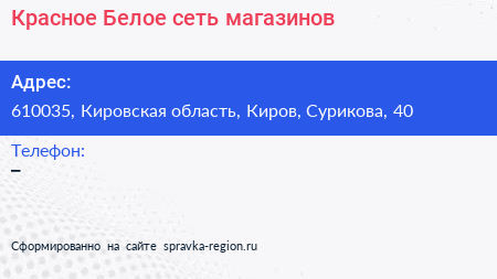 Красное & Белое, сеть магазинов по адресу 610035, Кировская область, Киров, Сурикова, 40 в дальнейшем Организация, размещена в следующих категориях:
