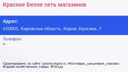 Красное & Белое, сеть магазинов по адресу 610001, Кировская область, Киров, Красина, 7 в дальнейшем Организация, размещена в следующих категориях: