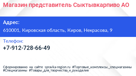 Магазин, представитель Сыктывкарпиво, АО по адресу 610001, Кировская область, Киров, Некрасова, 9 в дальнейшем Организация, размещена в следующих категориях:
