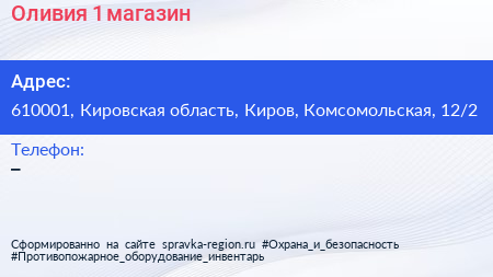 Оливия-1, магазин по адресу 610001, Кировская область, Киров, Комсомольская, 12/2 в дальнейшем Организация, размещена в следующих категориях: