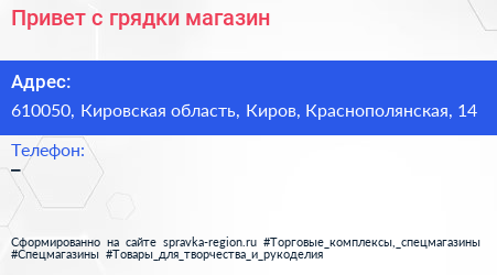 Привет с грядки, магазин по адресу 610050, Кировская область, Киров, Краснополянская, 14 в дальнейшем Организация, размещена в следующих категориях: