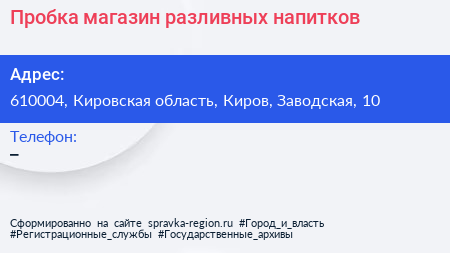 Пробка, магазин разливных напитков по адресу 610004, Кировская область, Киров, Заводская, 10 в дальнейшем Организация, размещена в следующих категориях: