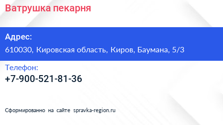 Ватрушка, пекарня по адресу 610030, Кировская область, Киров, Баумана, 5/3 в дальнейшем Организация, размещена в следующих категориях: