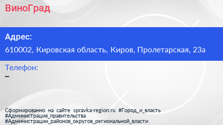 ВиноГрад по адресу 610002, Кировская область, Киров, Пролетарская, 23а в дальнейшем Организация, размещена в следующих категориях: