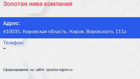 Золотая нива, компания по адресу 610035, Кировская область, Киров, Воровского, 111а в дальнейшем Организация, размещена в следующих категориях: