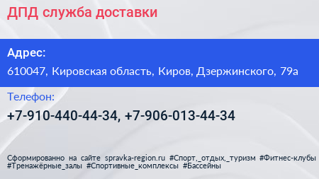 ДПД, служба доставки по адресу 610047, Кировская область, Киров, Дзержинского, 79а в дальнейшем Организация, размещена в следующих категориях: