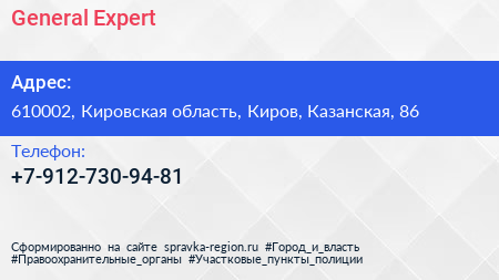 General Expert по адресу 610002, Кировская область, Киров, Казанская, 86 в дальнейшем Организация, размещена в следующих категориях: