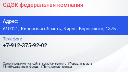 СДЭК, федеральная компания по адресу 610021, Кировская область, Киров, Воровского, 137Б в дальнейшем Организация, размещена в следующих категориях: