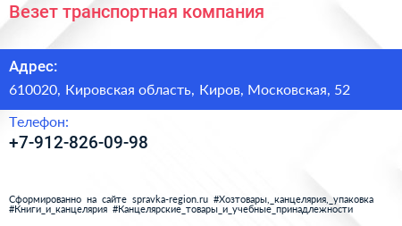 Везет, транспортная компания по адресу 610020, Кировская область, Киров, Московская, 52 в дальнейшем Организация, размещена в следующих категориях: