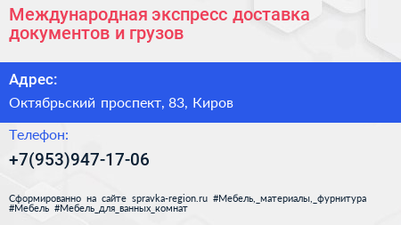 Международная экспресс-доставка документов и грузов по адресу Октябрьский проспект, 83, Киров в дальнейшем Организация, размещена в следующих категориях: