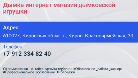 Дымка, интернет-магазин дымковской игрушки по адресу 610027, Кировская область, Киров, Красноармейская, 33 в дальнейшем Организация, размещена в следующих категориях: