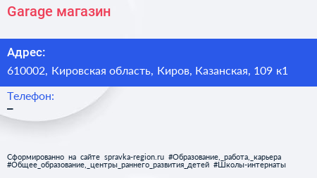 Garage, магазин по адресу 610002, Кировская область, Киров, Казанская, 109 к1 в дальнейшем Организация, размещена в следующих категориях: