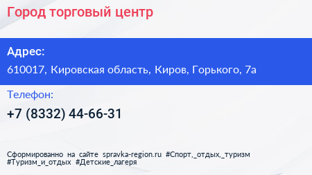 Город, торговый центр по адресу 610017, Кировская область, Киров, Горького, 7а в дальнейшем Организация, размещена в следующих категориях: