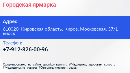 Городская ярмарка по адресу 610020, Кировская область, Киров, Московская, 37/1 киоск в дальнейшем Организация, размещена в следующих категориях: