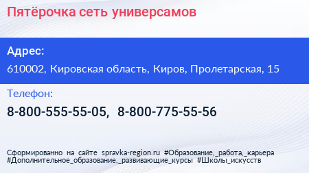 Пятёрочка, сеть универсамов по адресу 610002, Кировская область, Киров, Пролетарская, 15 в дальнейшем Организация, размещена в следующих категориях: