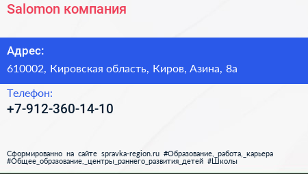 Salomon, компания по адресу 610002, Кировская область, Киров, Азина, 8а в дальнейшем Организация, размещена в следующих категориях: