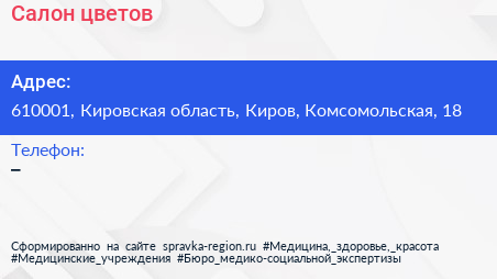 Салон цветов по адресу 610001, Кировская область, Киров, Комсомольская, 18 в дальнейшем Организация, размещена в следующих категориях: