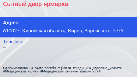 Сытный двор, ярмарка по адресу 610027, Кировская область, Киров, Воровского, 57/5 в дальнейшем Организация, размещена в следующих категориях: