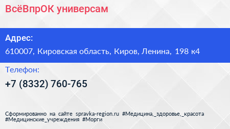 ВсёВпрОК, универсам по адресу 610007, Кировская область, Киров, Ленина, 198 к4 в дальнейшем Организация, размещена в следующих категориях: