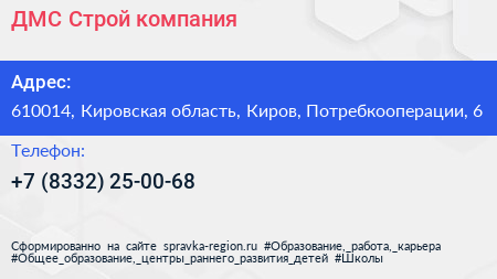 ДМС Строй, компания по адресу 610014, Кировская область, Киров, Потребкооперации, 6 в дальнейшем Организация, размещена в следующих категориях: