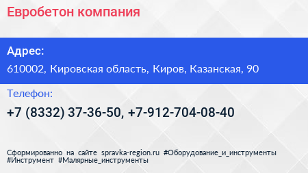 Евробетон, компания по адресу 610002, Кировская область, Киров, Казанская, 90 в дальнейшем Организация, размещена в следующих категориях: