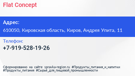 Flat. Concept по адресу 610050, Кировская область, Киров, Андрея Упита, 11 в дальнейшем Организация, размещена в следующих категориях: