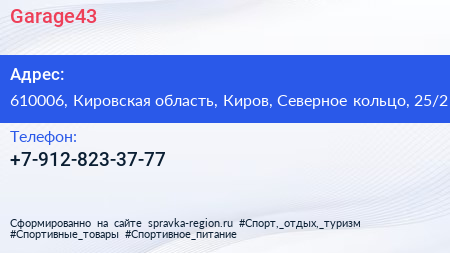 Garage43 по адресу 610006, Кировская область, Киров, Северное кольцо, 25/2 в дальнейшем Организация, размещена в следующих категориях: