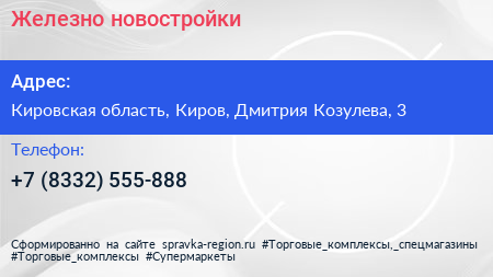 Железно, новостройки по адресу Кировская область, Киров, Дмитрия Козулева, 3 в дальнейшем Организация, размещена в следующих категориях: