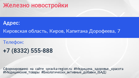 Железно, новостройки по адресу Кировская область, Киров, Капитана Дорофеева, 7 в дальнейшем Организация, размещена в следующих категориях: