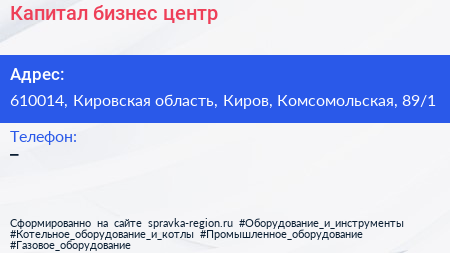 Капитал, бизнес-центр по адресу 610014, Кировская область, Киров, Комсомольская, 89/1 в дальнейшем Организация, размещена в следующих категориях: