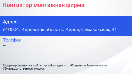 Контактор, монтажная фирма по адресу 610004, Кировская область, Киров, Семаковская, 41 в дальнейшем Организация, размещена в следующих категориях: