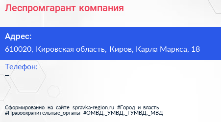 Леспромгарант, компания по адресу 610020, Кировская область, Киров, Карла Маркса, 18 в дальнейшем Организация, размещена в следующих категориях: