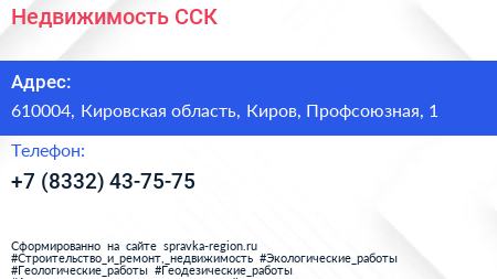 Недвижимость ССК по адресу 610004, Кировская область, Киров, Профсоюзная, 1 в дальнейшем Организация, размещена в следующих категориях: