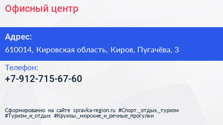 Офисный центр по адресу 610014, Кировская область, Киров, Пугачёва, 3 в дальнейшем Организация, размещена в следующих категориях: