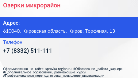 Озерки, микрорайон по адресу 610040, Кировская область, Киров, Торфяная, 13 в дальнейшем Организация, размещена в следующих категориях: