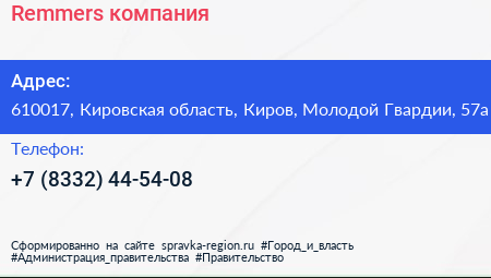 Remmers, компания по адресу 610017, Кировская область, Киров, Молодой Гвардии, 57а в дальнейшем Организация, размещена в следующих категориях: