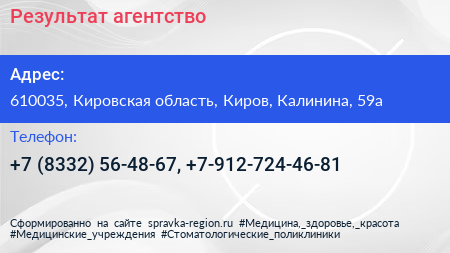 Результат, агентство по адресу 610035, Кировская область, Киров, Калинина, 59а в дальнейшем Организация, размещена в следующих категориях:
