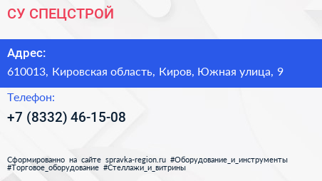СУ СПЕЦСТРОЙ по адресу 610013, Кировская область, Киров, Южная улица, 9 в дальнейшем Организация, размещена в следующих категориях: