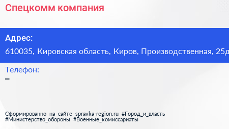 Спецкомм, компания по адресу 610035, Кировская область, Киров, Производственная, 25д в дальнейшем Организация, размещена в следующих категориях: