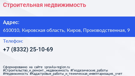 Строительная недвижимость по адресу 610010, Кировская область, Киров, Производственная, 9 в дальнейшем Организация, размещена в следующих категориях: