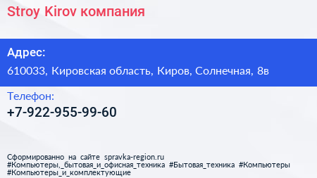 Stroy-Kirov, компания по адресу 610033, Кировская область, Киров, Солнечная, 8в в дальнейшем Организация, размещена в следующих категориях: