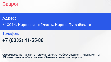 Сварог по адресу 610014, Кировская область, Киров, Пугачёва, 1а в дальнейшем Организация, размещена в следующих категориях: